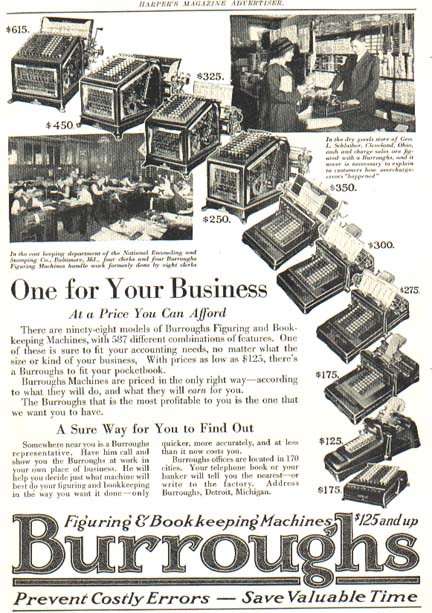 Arithmometer Co. marketed its improved Burroughs Registering Accountant in