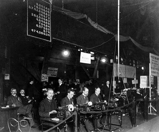 or three active clerks. Inclosed in a frame with heavy plate-glass panels,