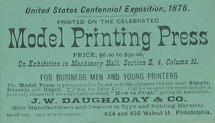trade card; Publishers" Weekly, July 1, 1876, p. 34. |