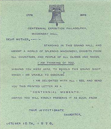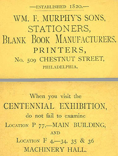 in 1876 was limited.  This page identifies office supplies and equipment that were displayed at the 1876 Centennial Exhibition in Philadelphia.  While