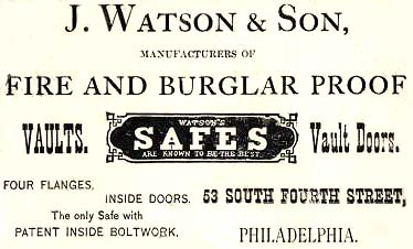 J. Watson & Son, Philadelphia, PA.  Fire and burglar proof safes