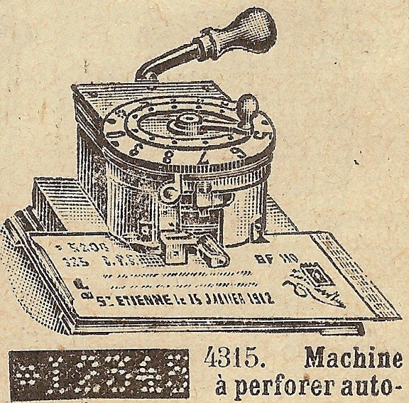 Check Perforator (top and second left)  & Automatic Bank Punch (third left) Advertised 1887 US (top), 1888-91 US (second), 1889 Germany (third), 1913 France (bottom) In 1891, C.H. Hansen, Chicago, IL, advertised this machine as "imported."  |
