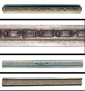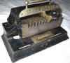 Perforator Attachment for Odell Typewriter Typewriter Patented 1889-90 ~ Typewriter & Perforator Advertised 1890-92 Odell Typewriter Co., Chicago, IL 1890 Price for Typewriter and Perforator Attachment $20 (double case typewriter) or $15 (single case) Photos right show the parts of the attachment. According to an 1891 ad, the Odell was "the only typewriter in the world having a check perforator attachment."  |