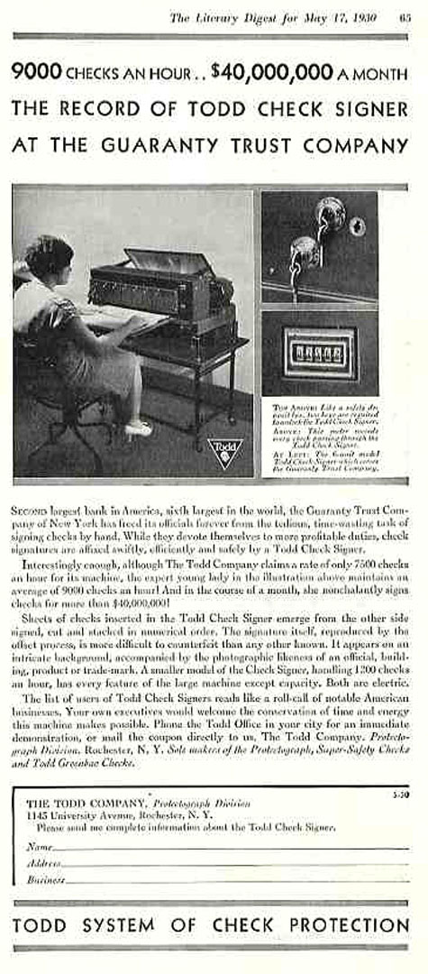 1930_Todd_check_signer.jpg (147423 bytes) Todd Check Signer, 1930 ad