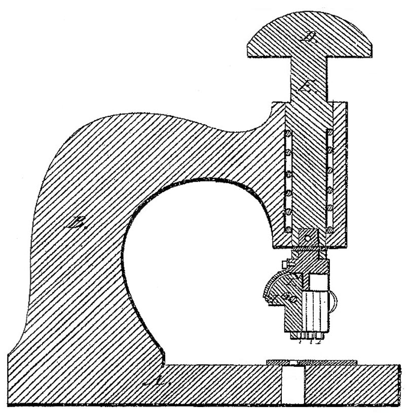 Antique Mechanical Check Protectors In 1869, Max Emanuel Berolzheimer of New York, NY, was awarded US Patent No. 97,344 for a check protector that was designed to punch holes in checks that had been printed to be used with this particular machine. This is the earliest evidence of a mechanical check protector that we have found. We do not know whether it was actually marketed. The illustration below left shows the machine. The illustration below right shows the pattern that was printed on the checks as well as another image of the machine and an image of the female die.