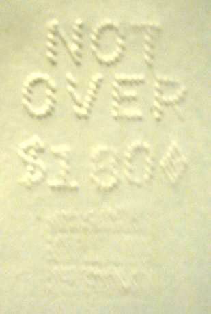 Both before and after the introduction of mechanical check protectors, some checks were protected in one of a great many other ways. One method was to print upper limit dollar amounts along the edge of the check, with lower limits closer to the body of the check and larger limits farther away, and then to cut off all but the lowest of the printed amounts that exceeded the value of the check. Two examples are provided below.