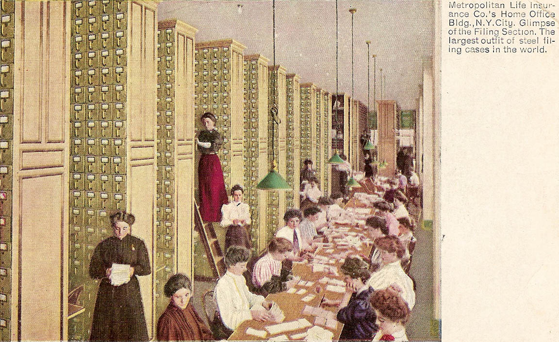 Filing Section, Metropolitan Life Insurance Co., New York, NY, postmarked 1907. | Early Office Museum Archives  |