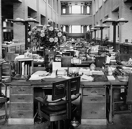Larkin Administration Building, Buffalo, NY.  The building's architect was Frank Lloyd Wright. The Larkin Company