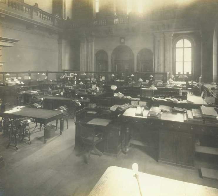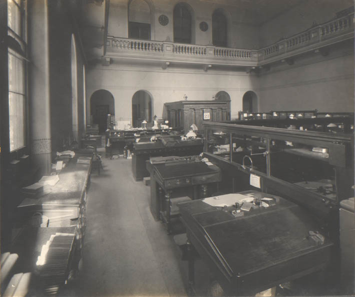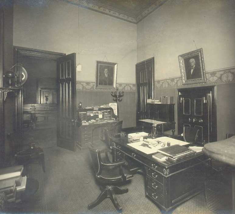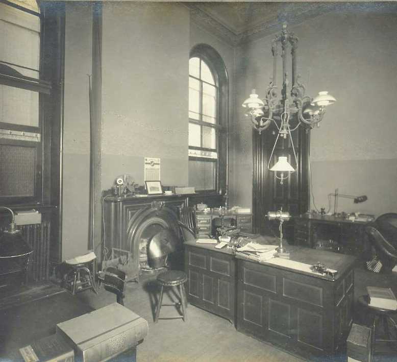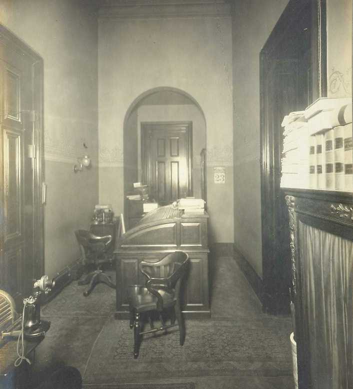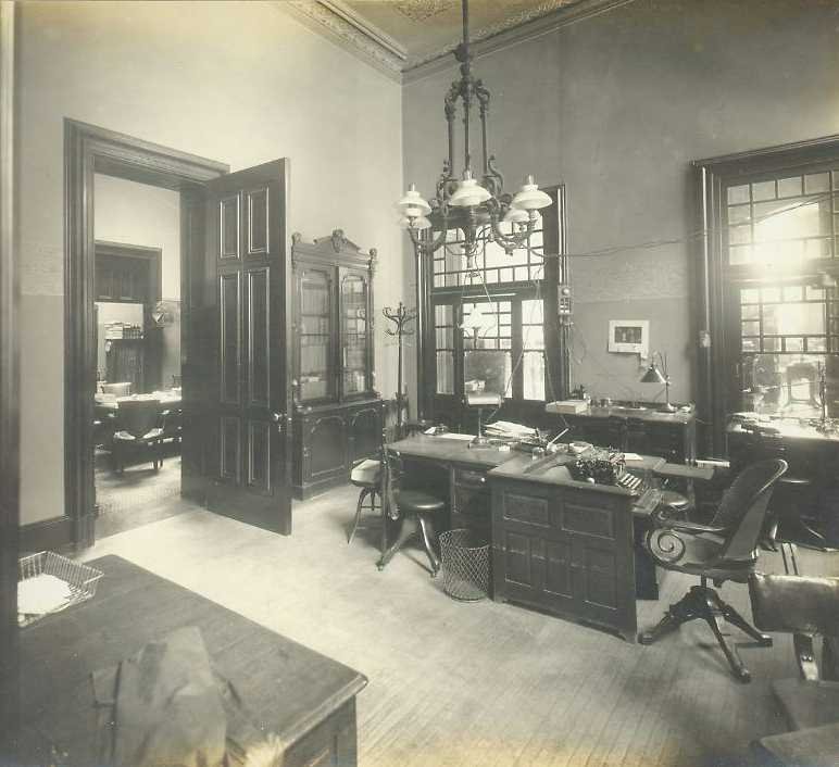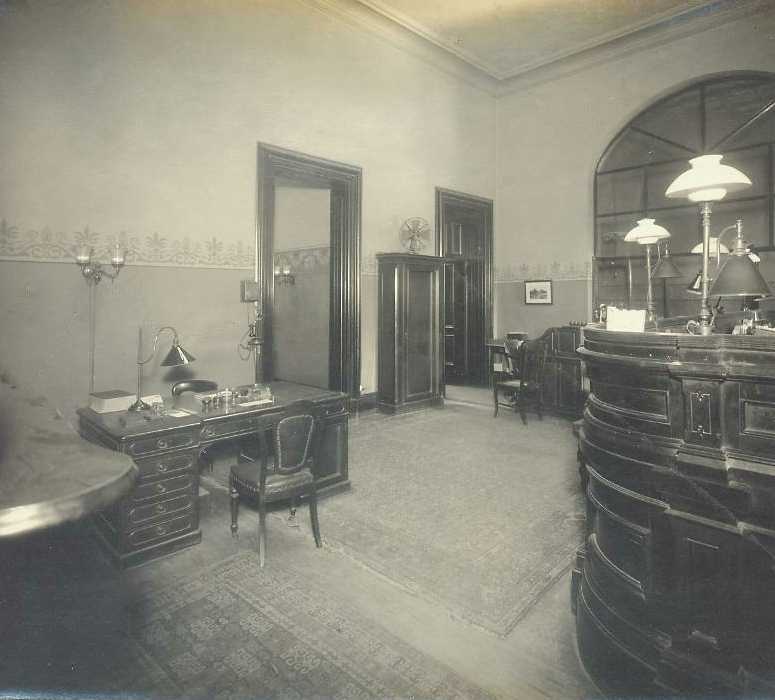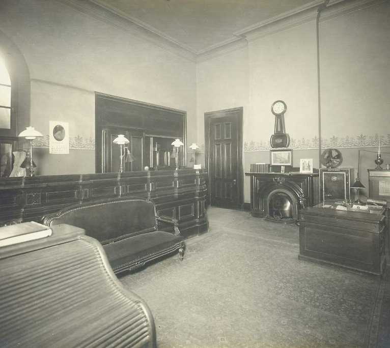 In 1910, there were eleven rooms in the bank: a large, two-story main office with an