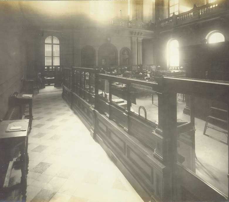of the room where bank employees worked by a partition with windows