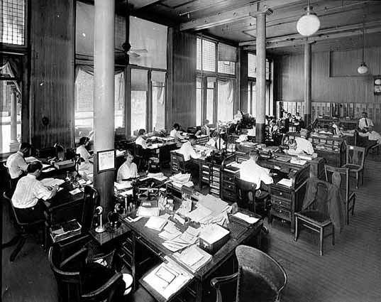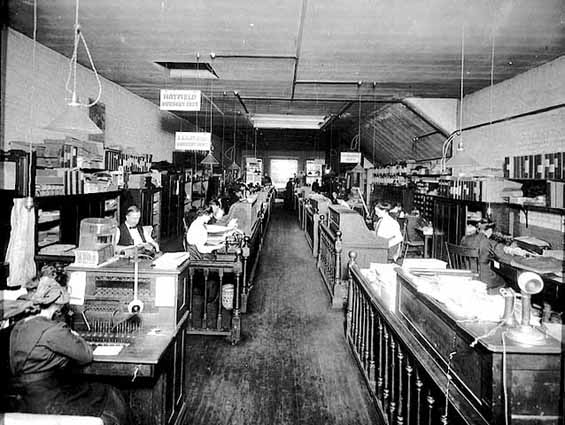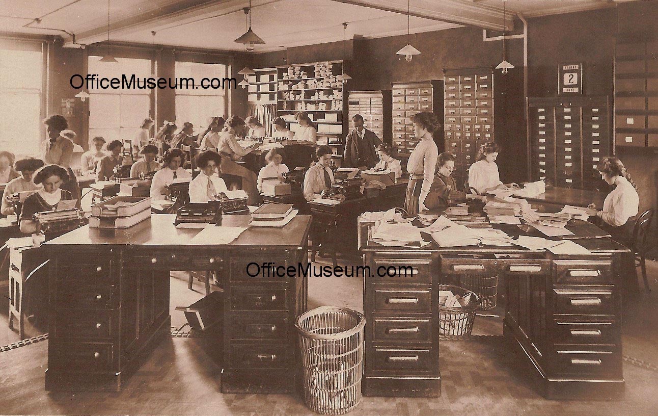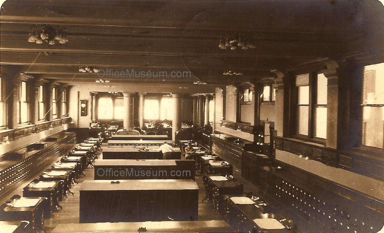Office, postmarked Hartford, CT, 1911. Although the office is not identified, it is presumably in a large insurance company. | Early Office Museum Archives  |