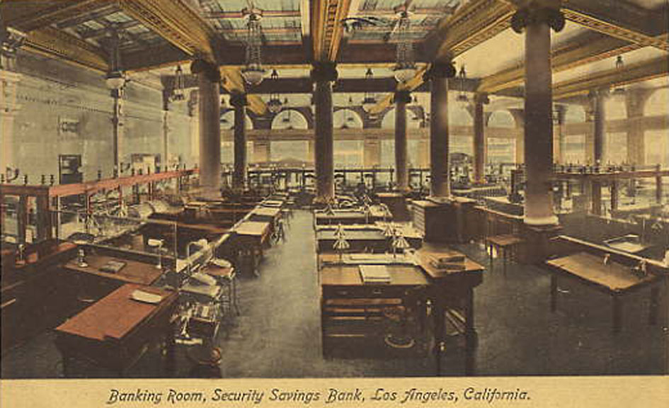 | "Banking Room, Security Savings Bank, Los Angeles, California," postmarked 1911. | Private collection | |