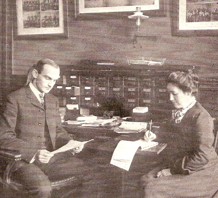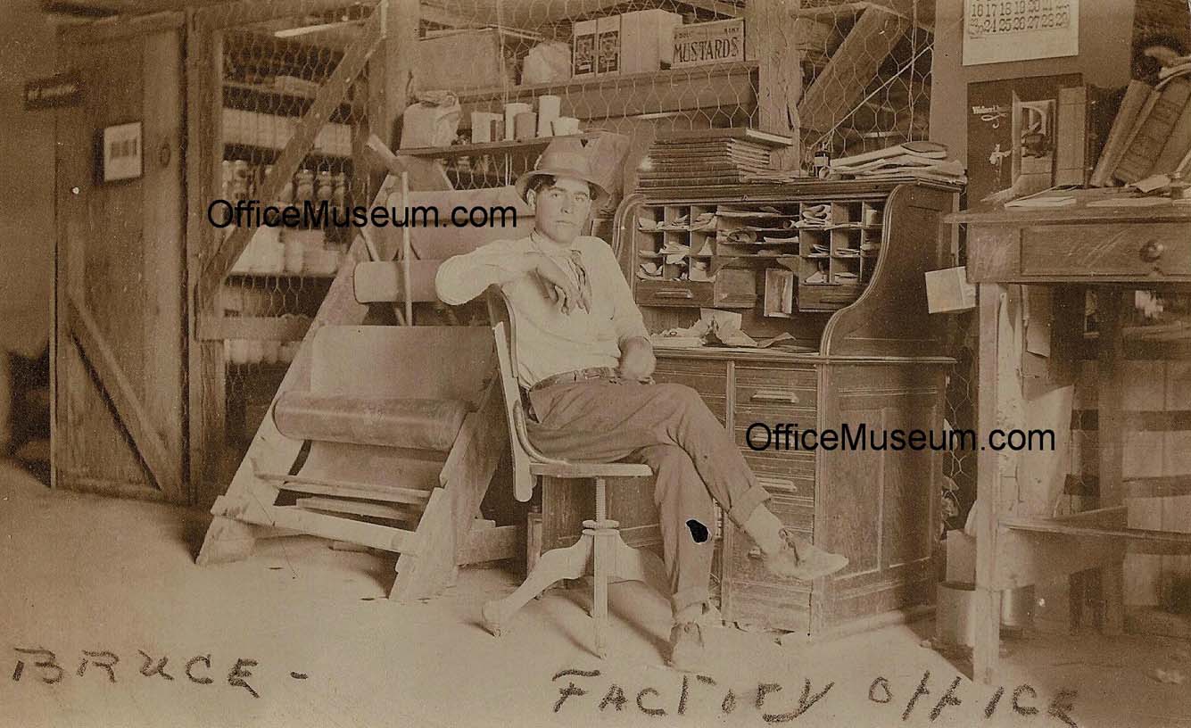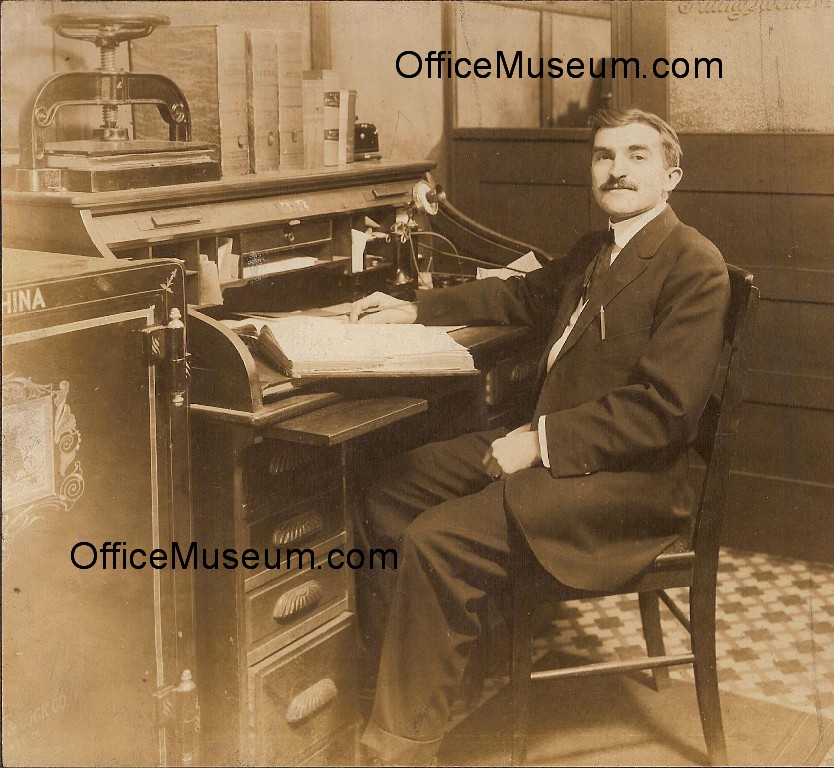 | Bruce Johnson in Factory Office, 1911. | Early Office Museum Archives  |