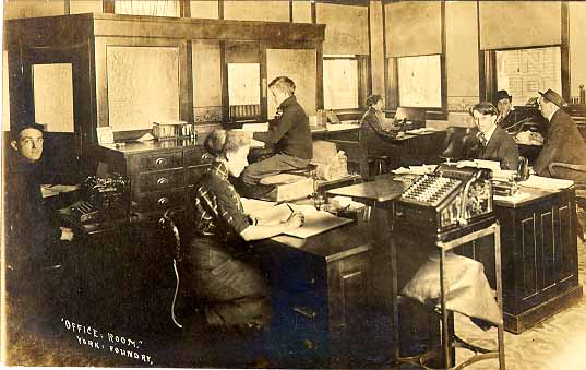"Office Room, York Foundry," York, NE, postcard, postmarked 1911. Wales adding machine, probably Model 10. The York Foundry was established in 1882. | Early Office Museum Archives  |