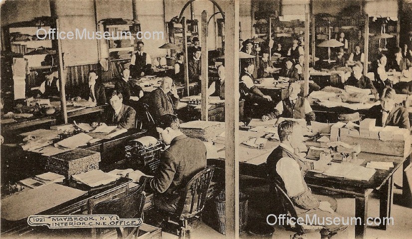 Office, Central New England Railroad, Maybrook, NY, 1921. Twenty-nine workers, all men, are visible. | Early Office Museum Archives  |