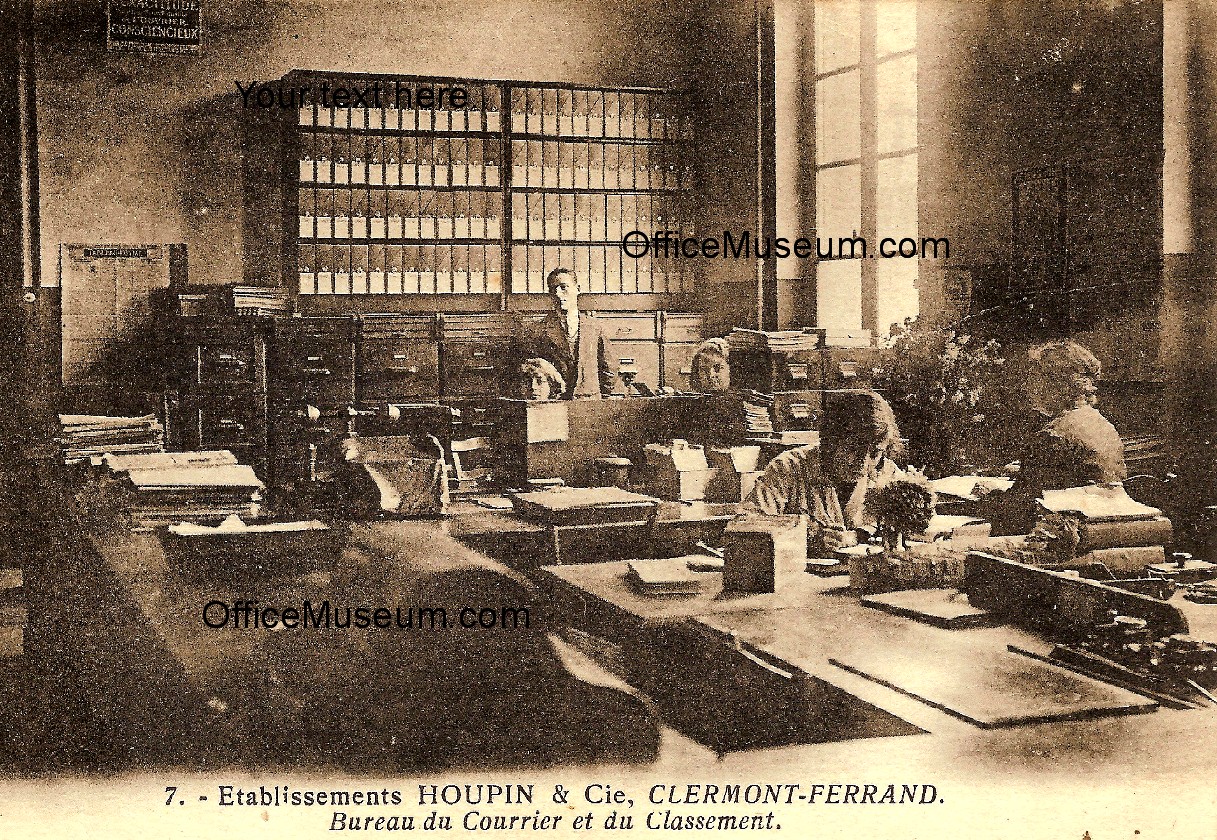Bureau du Courrier et du Classement (Mail and Filing Office), Etablissements Houpin et Compagnie, Clermont-Ferrand, Puy-de-Dôme, Auvergne, France. Houpin & Cie. manufactured tin products. | Early Office Museum Archives  |
