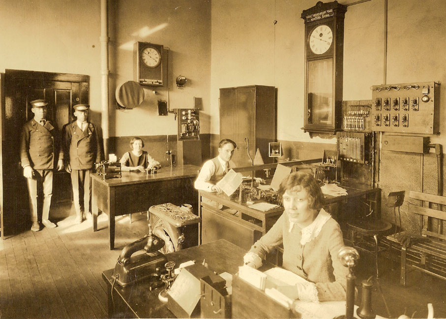 | Western Union telegraph office, Omaha, NE. Based on the equipment shown, Neal McEwen concluded that this photo and the following one show a Western Union telegraph office. | Early Office  Museum Archives  |