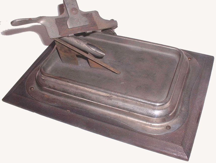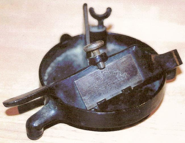 Pencil Pointer Advertised 1904-07 Frank Mossberg Co., Attleboro, MA (manufacturer) Guhl & Harbeck Co., Hamburg, Germany (patent holder) Shavings container not shown in lower photo. Lower photograph courtesy of Howard Levin |
