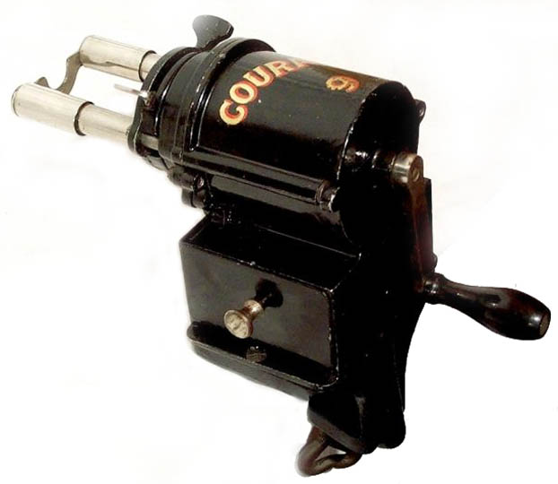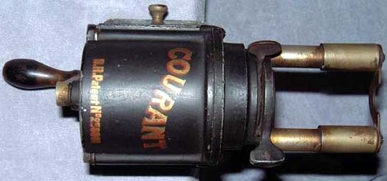 9 Pencil Sharpener Patented 1912-13 ~ Advertised 1925-39 Eugen Courant Germany Early Courants are made of steel while late ones are made of aluminum, according to www.spitzmaschine.de. The