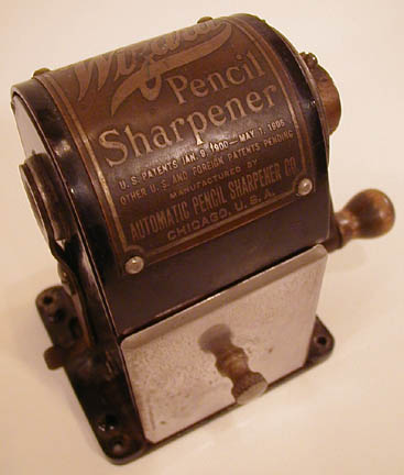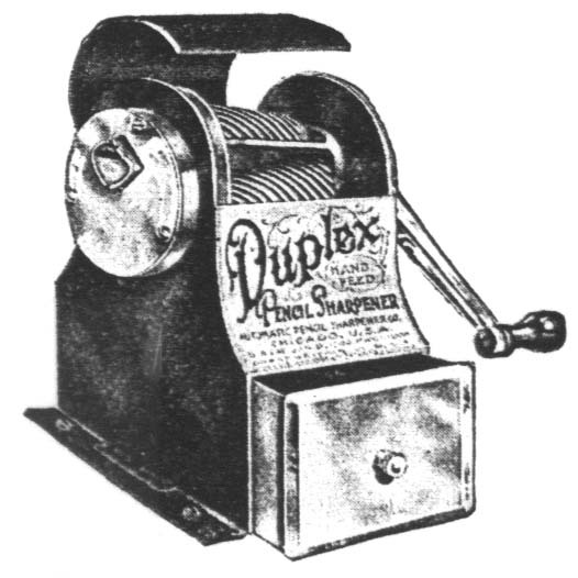 Pencil Sharpener Advertised 1915 onward for many years (at least until 1936) with model changes Automatic Pencil Sharpener Co. Chicago, IL |