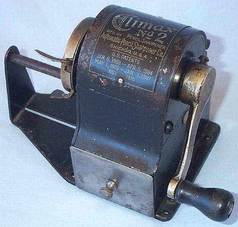2 Pencil Sharpener Advertised 1913-36 Automatic Pencil Sharpener Co. Chicago, IL There is also a machine labeled Climax No. 1. The Climax No. 3 was advertised 1937-38 |