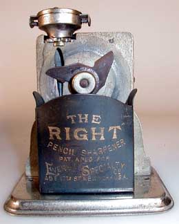 Pencil Sharpener Advertised 1914 onward for many years (at least until 1936) with model changes Automatic Pencil Sharpener Co. Chicago, IL |