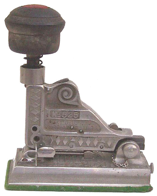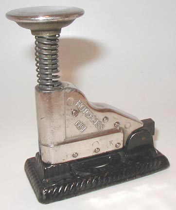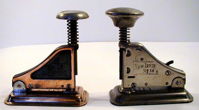 "The Nos. 1, 3 and 4 [which have plungers topped by knobs] operate the same. It is only required to strike the plunger a quick, sharp blow to bind paper or cloth.