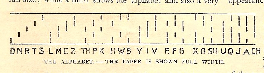 (patented 1885, advertised 1889 onward) printed letters rather than dashes from side to side across a roll
