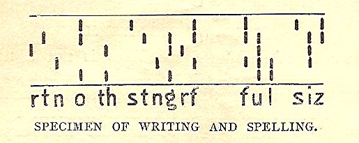 This strip shows a shorthand specimen printed using the Stenograph, 1899