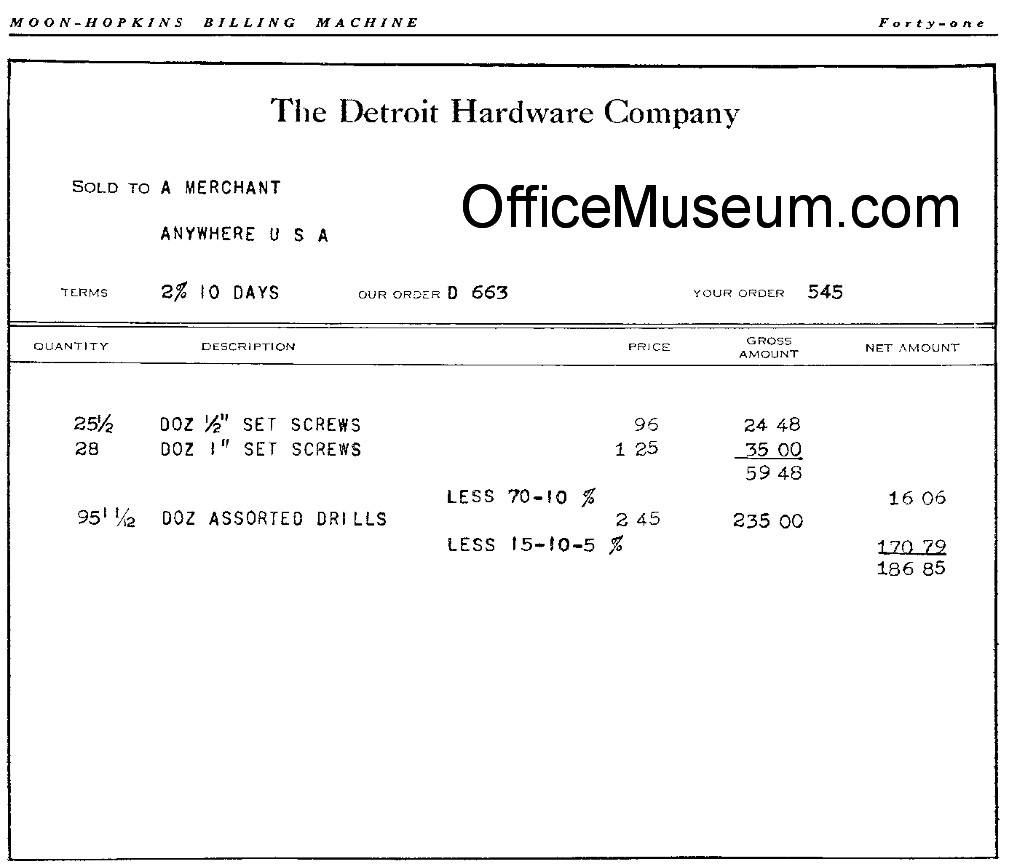 Keyboard, 1899.  The machine printed dashes in any combination of 4