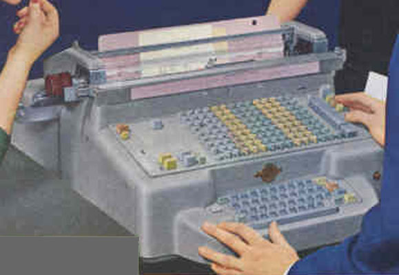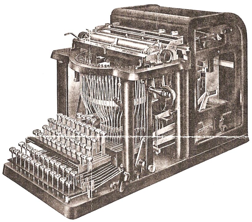 keys could be struck simultaneously, and the machine printed a syllable or