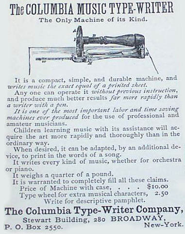 Columbia Music Typewriter, 1886 ad