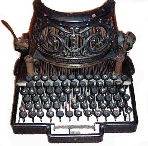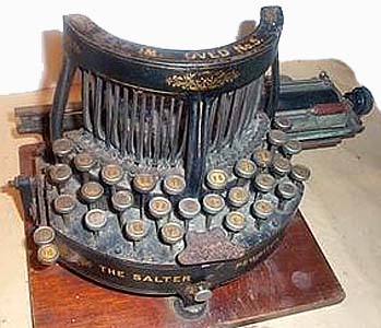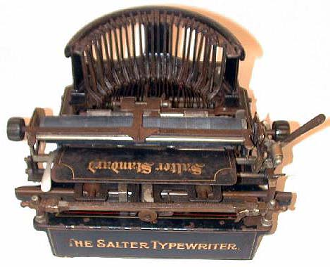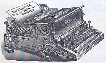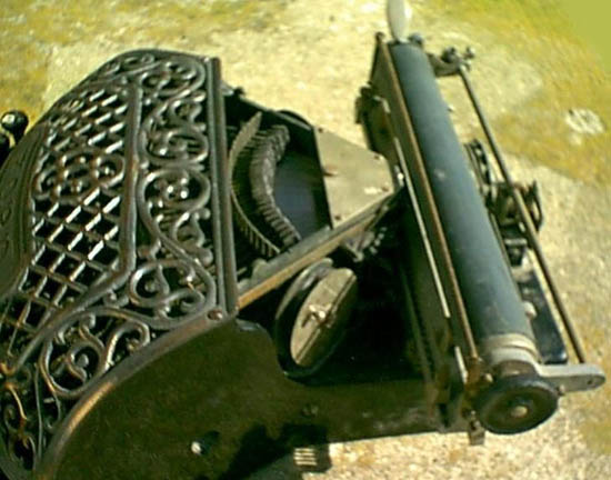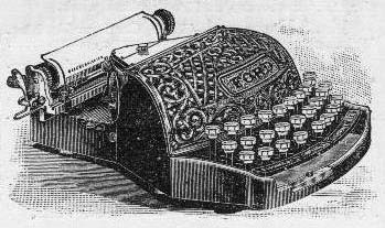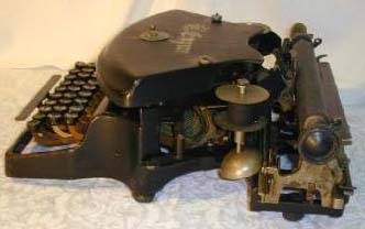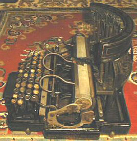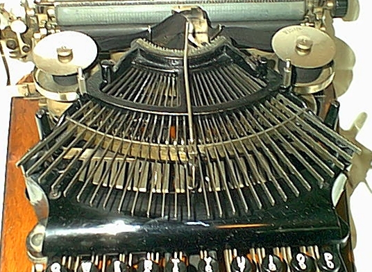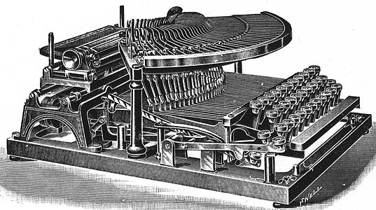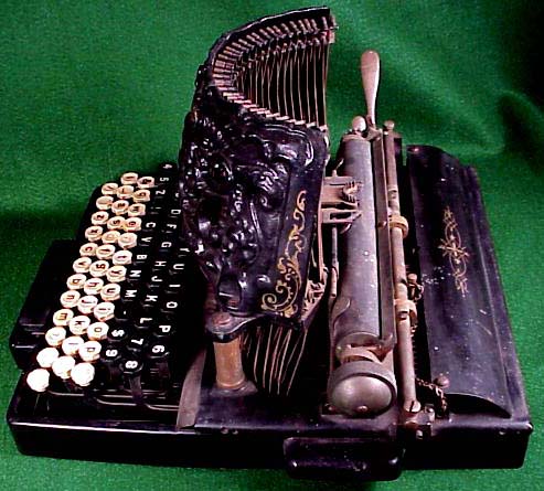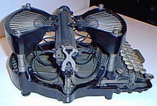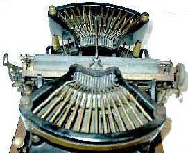 Typewriter  (1890s). All its type-bars are located in front of the platen.  |