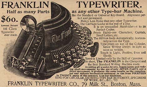 New Franklin, 1890s, showing ribbon spools were positioned above